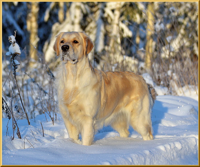 E Golden Niro´s The One And Only-Lessieanne´s Echo Women Född 2013-08-28-Död 2017-07-16 Finaste Nina som tyvärr lämnade oss alldeles för tidigt. Nina var en sån otroligt fin och snäll hund. En sådan hund får man bara en gång i livet. Nina fick sitt första cert i Askersund den 8/8-15. Det var första gången som jag fick cert på en golden. Jag var så otoligt glad och lycklig. Jag saknar dig så otroligt mycket. Sov gott älskade Nina.
